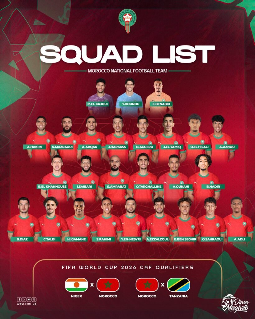 La liste complète des Lions de l’Atlas convoqués par Walid Regragui:
